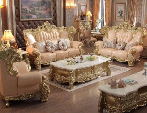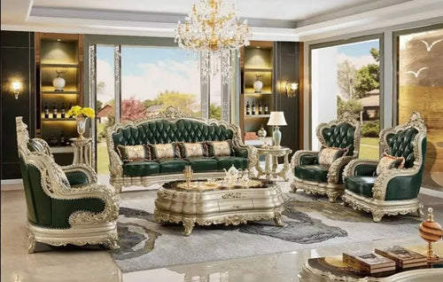 Liville Style Leather European Wooden Sofa Set / Lixra