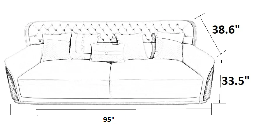 • L95xW38.6xH33.5 Inches(241.3x98x85 Cm)