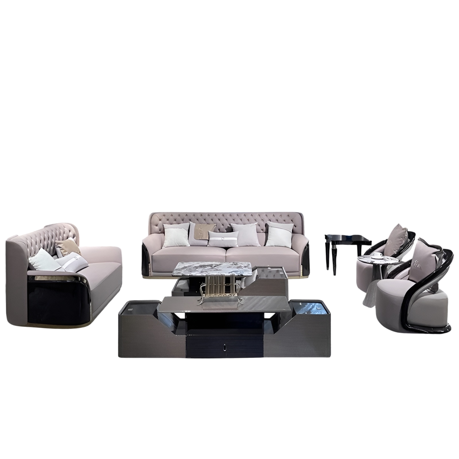 Aesthetic Tufted Leather Cozy Luxury Sofa Set - Lixra.com