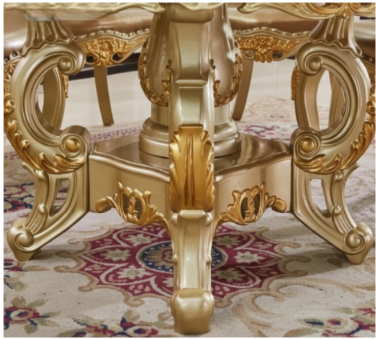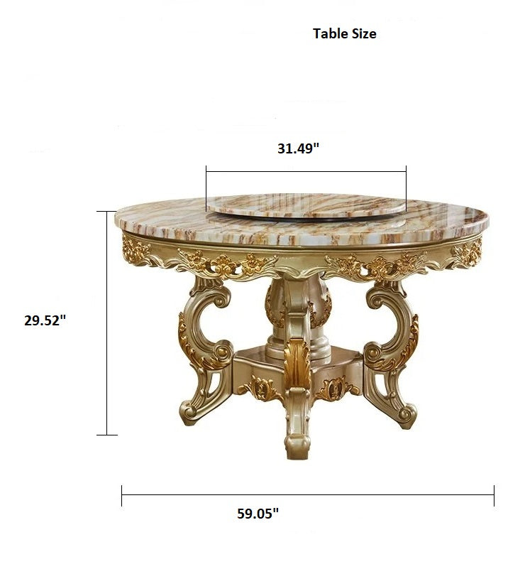 The Lazy Susan in the center allows for easy access to food or drinks, making it perfect for family gatherings or dinner parties. The sturdy base supports the marble top, and its antique design adds a touch of charm to any dining room. This antique European round marble dining table set makes your living space more beautiful and attractive.