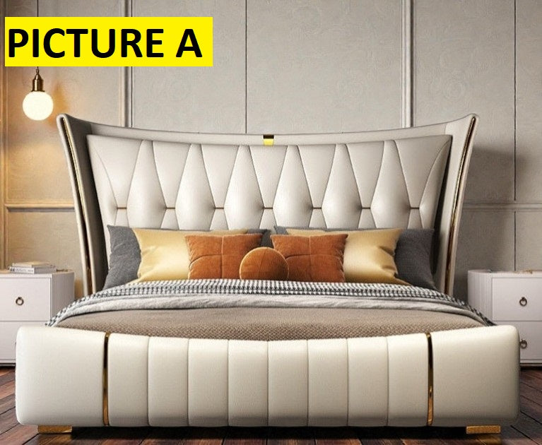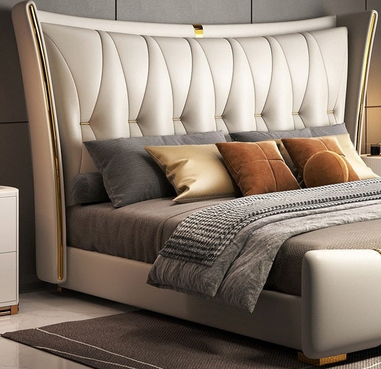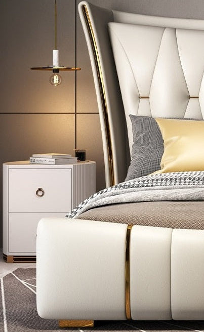 Contemporary Spacious Gold Plated Leather Bed / Lixra