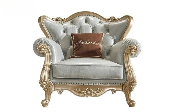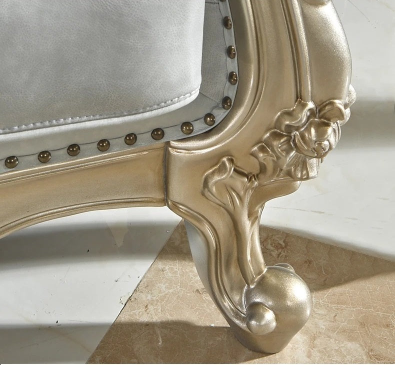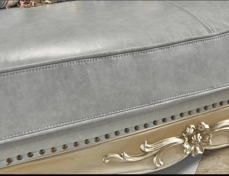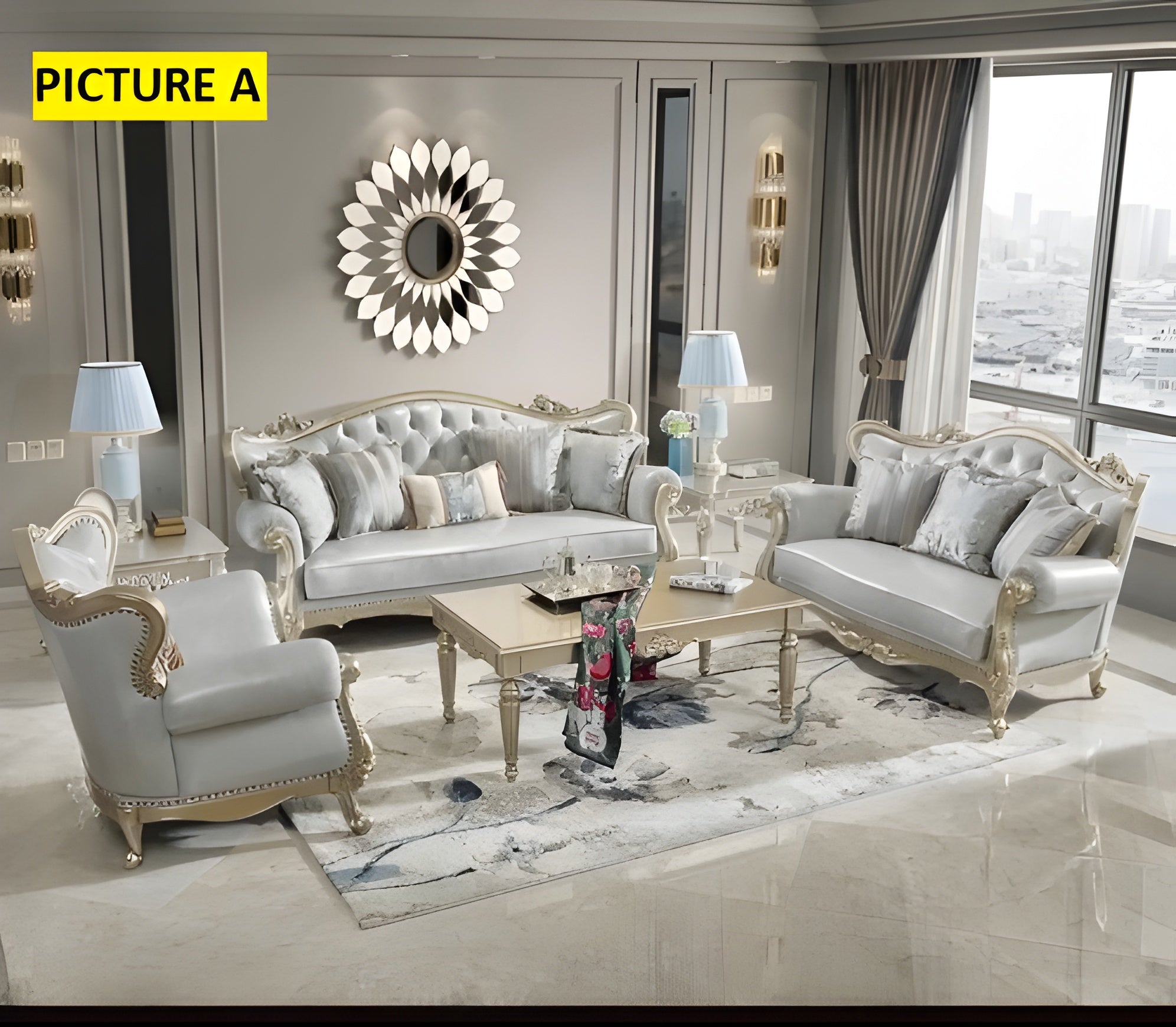 The European Handcrafted 3-2-1 Leather Sofa Set is a stylish and elegant seating arrangement that brings a classic, vintage touch to any living room. It includes three pieces. The leather upholstery gives it a luxurious and sophisticated look, while the antique European sofa design adds ornate details like carved wooden legs, intricate patterns, and a timeless feel. This European handcrafted 3-2-1 leather sofa set combines comfort with classic style, making it an excellent choice for those who appreciate traditional, high-quality furniture