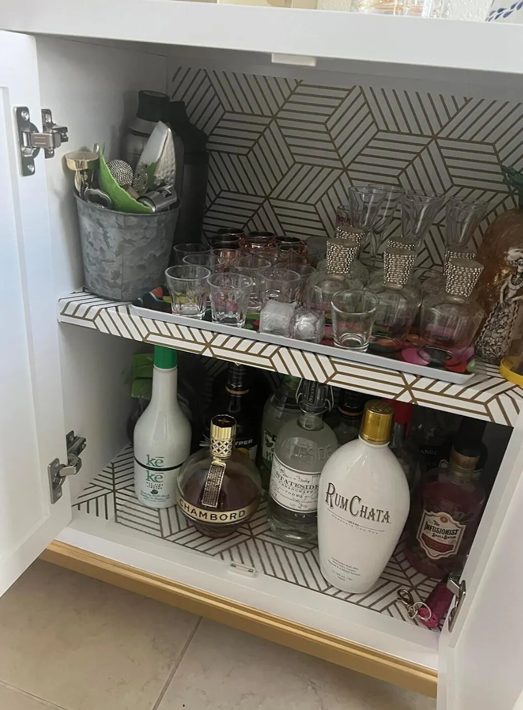 This Functional Beauty Wood Buffet Cabinet With Gold-line Handles can be utilized in the living room, dining room, or kitchen. It is designed to fulfill all of your storage requirements and improve the visual appeal of your area.