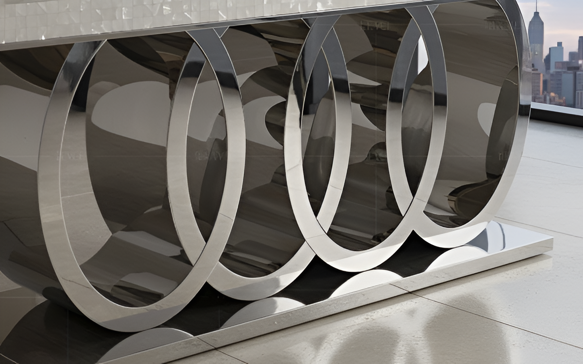Their medium-density foam filling offers steady comfort, and the metal legs add strength and shine. Moreover, the balanced mix of marble, metal, and elegant seating makes this modern dining table set perfect for both daily use and special moments. Overall, it lifts your space with a fresh, modern feel and lasting quality. Complete your dining room with the refined style of the Geometric Pattern Marble Dining Table-Set.