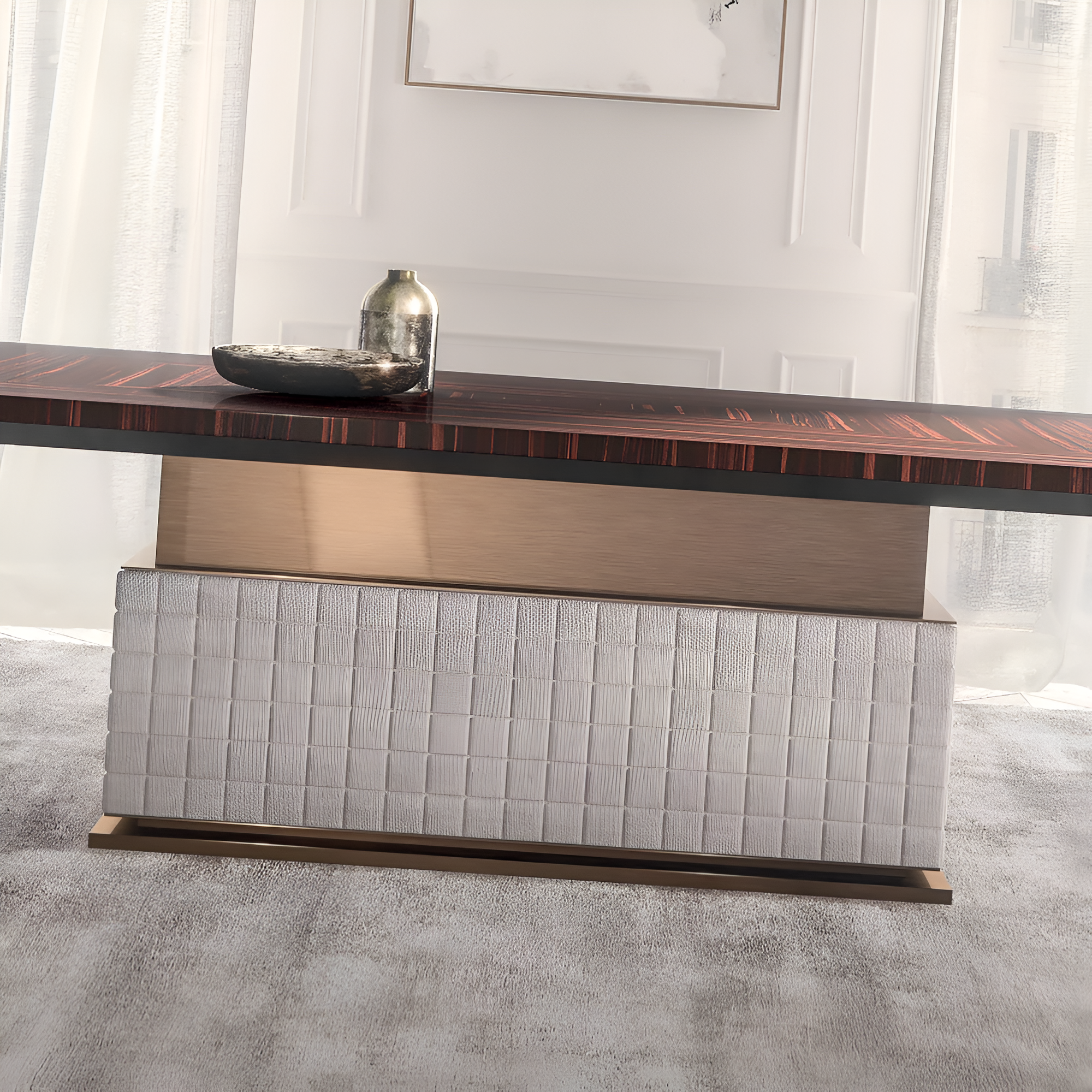 The strong metal base ensures durability and strength over time, making this Wooden Dining Table both reliable and stylish. A dependable option for any household, this smooth fusion of metal and wood gives both flair and functionality. With its sleek, minimalist wooden style, this Italian Wooden Modern Dining Table will effortlessly elevate your dining area.