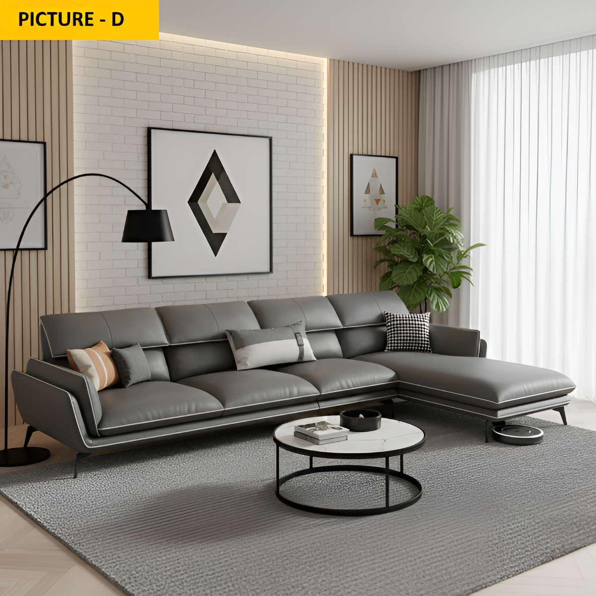 L-Shaped Minimalistic Leather Sectional Sofa Set