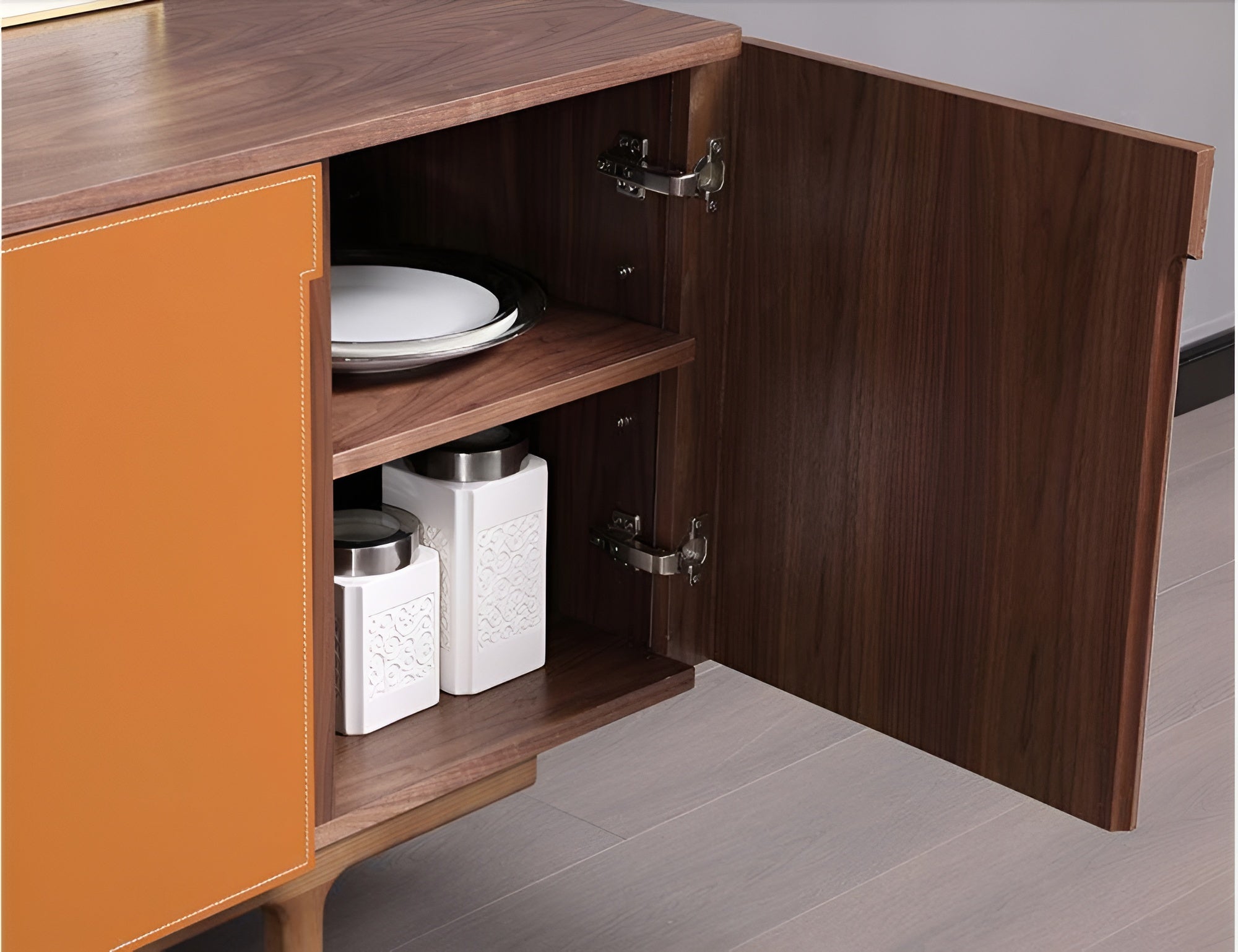 This buffet is a perfect fit into the recessed space of our dining room and, everyone entering the dining room has a full view of an attractive piece of dining room furniture with plenty of space for a complete dinner service and decorator pieces. The dining buffet was assembled quite easily and it is sturdy, durable and quite easy to move around. Excellent product..!