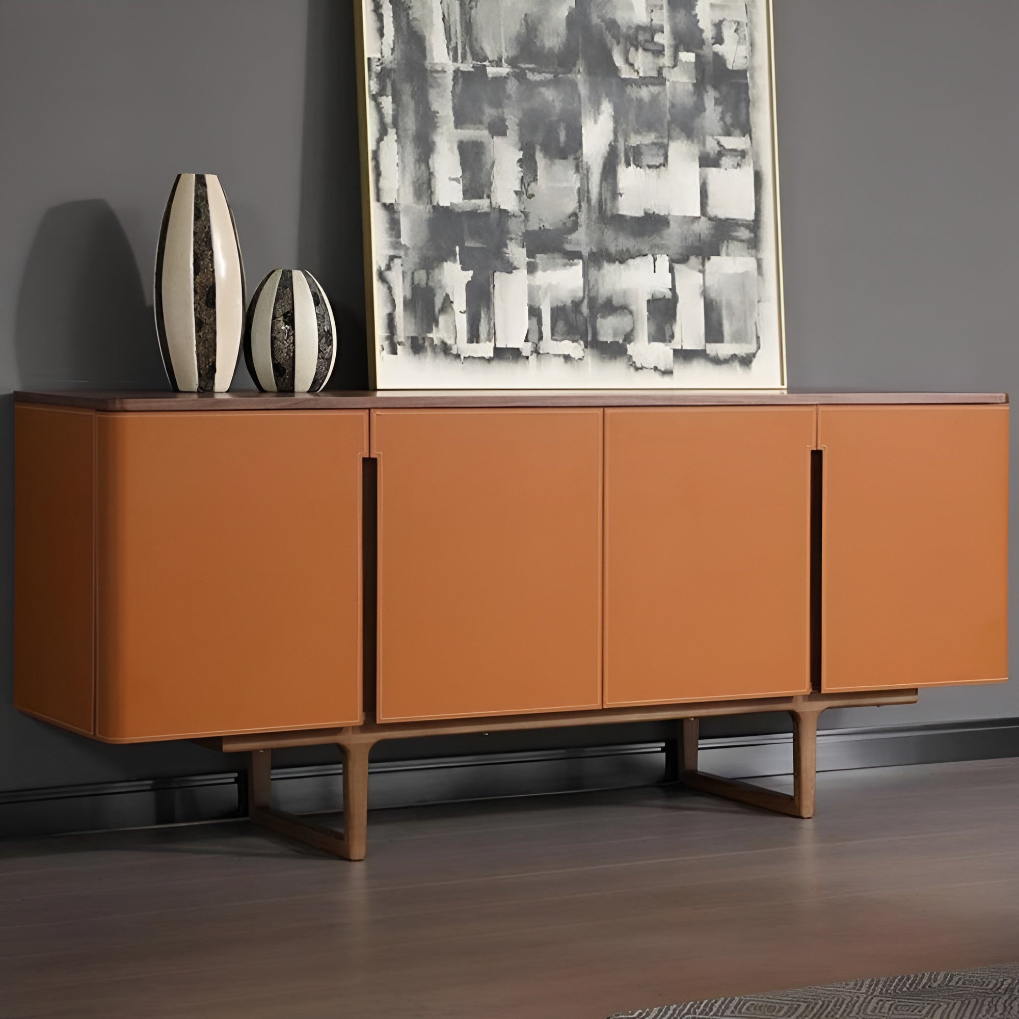 Leather Upholstered Wooden Modern Buffet Table - Lixra.com