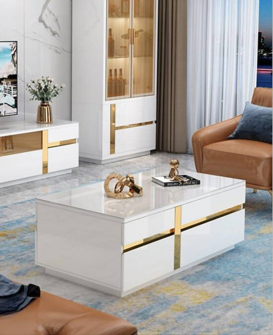 Luxury Living Black And Gold Coffee Table With TV Stand / Lixra