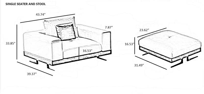 • 1 x Sofa Set ( 1 x Four Seater + 1 x Single Seater + 1 x Stool )