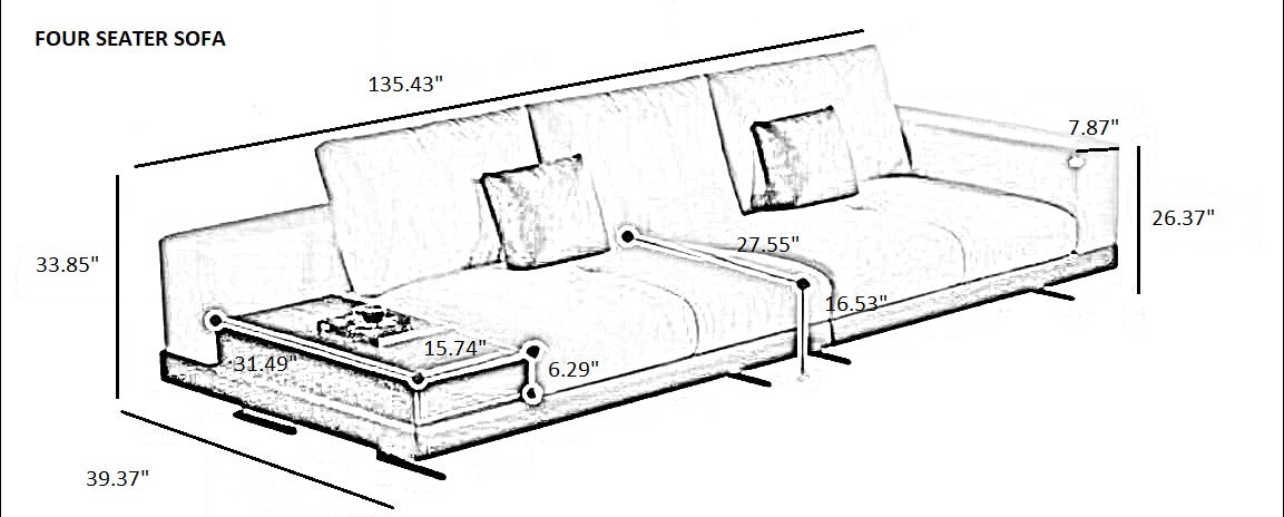 • L135.43xW39.37xH33.85H Inches (343.99x100x86 cm)