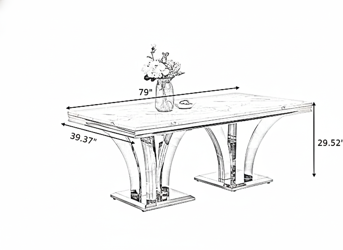 Elevate your dining experience with our Modern Elegance Marble Dining Table Set. Crafted to perfection, this Marble Dining Table Set combines fine quality with contemporary design. The table's sleek marble top rests on a sturdy stainless steel base, exuding sophistication and durability. Accompanied by eight impeccably designed chairs, comfort meets style seamlessly.