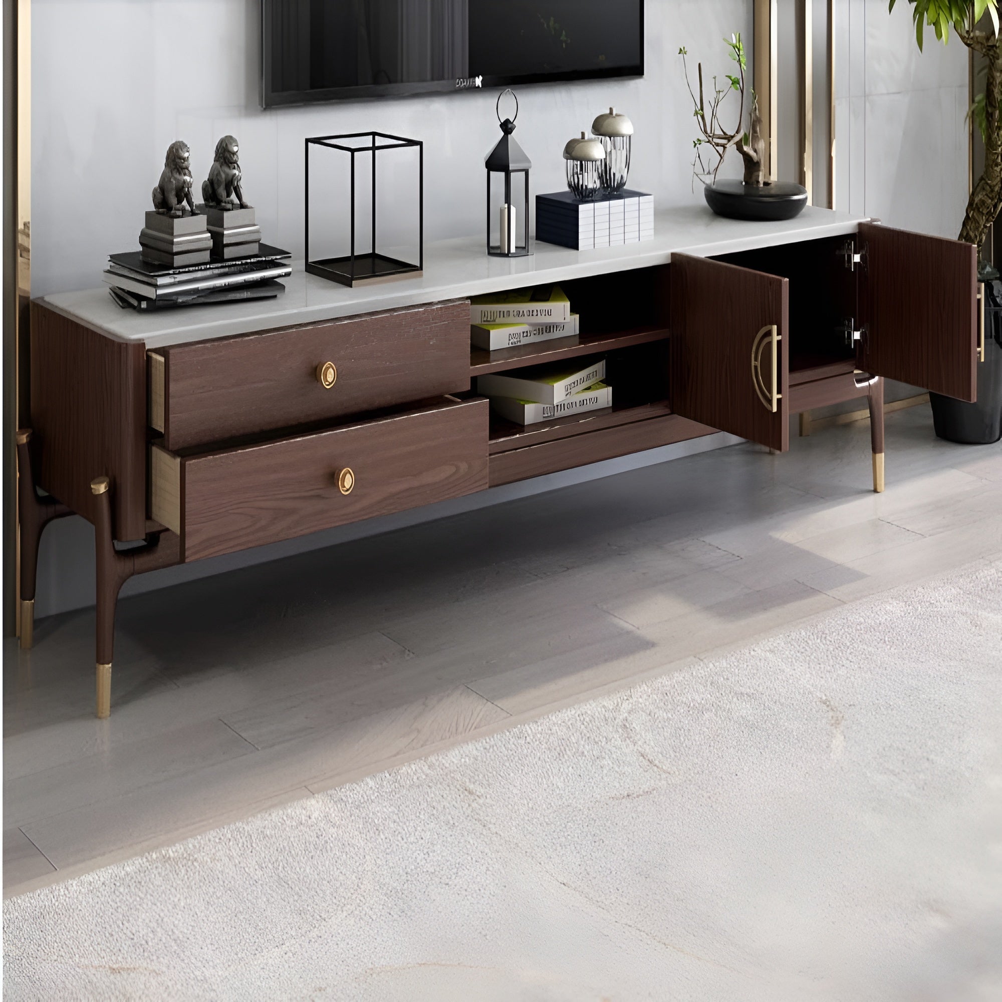 Modern Marble Top TV-Stand Table with Storage Drawers
