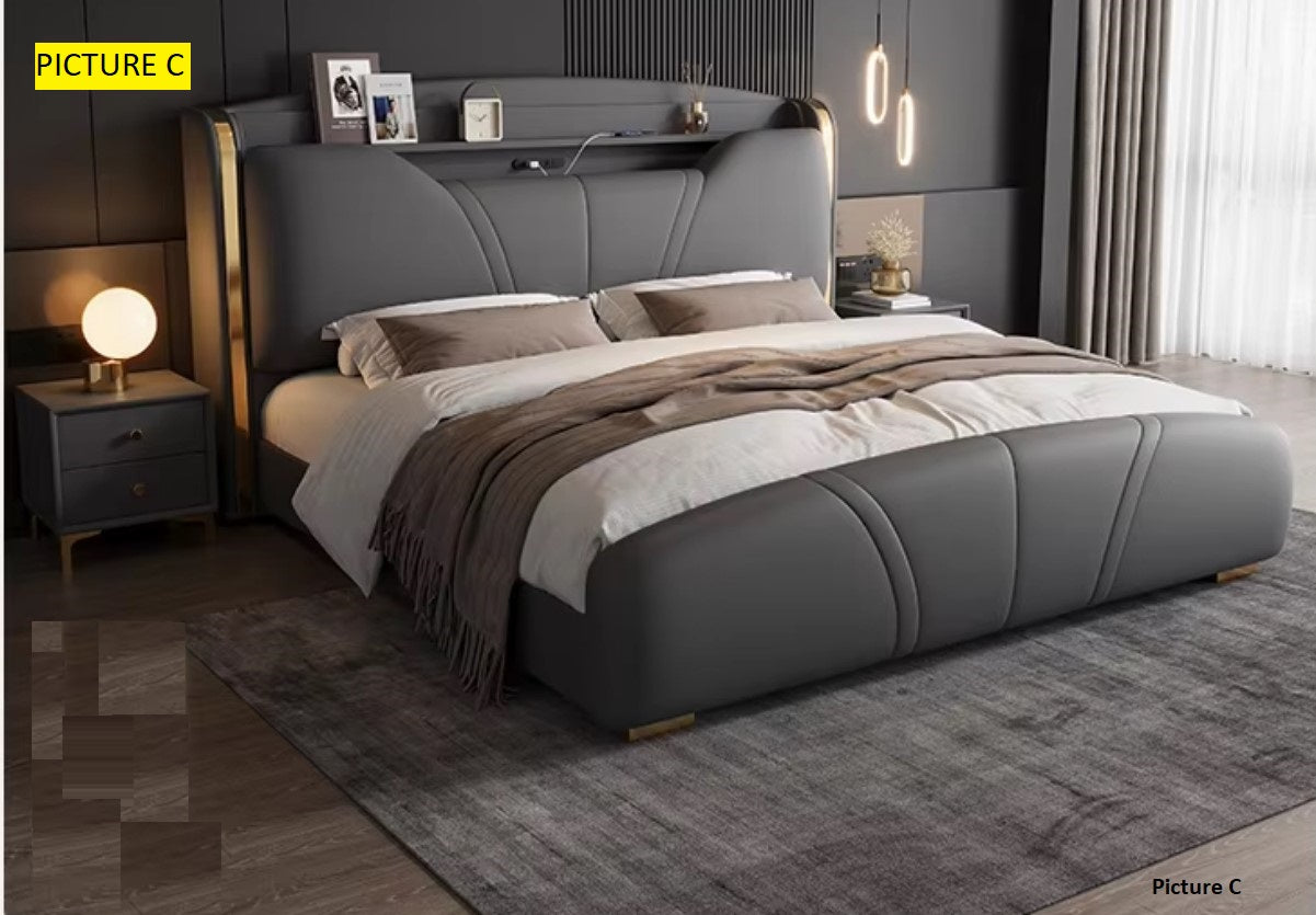 The soft, upholstered headboard is the perfect background for your pillows and bedding since it provides comfort and style. A small storage shelf is been there in the headboard where you can keep goods. This nordic style gorgeous leather bed will make your bedroom attractive and gorgeous.
