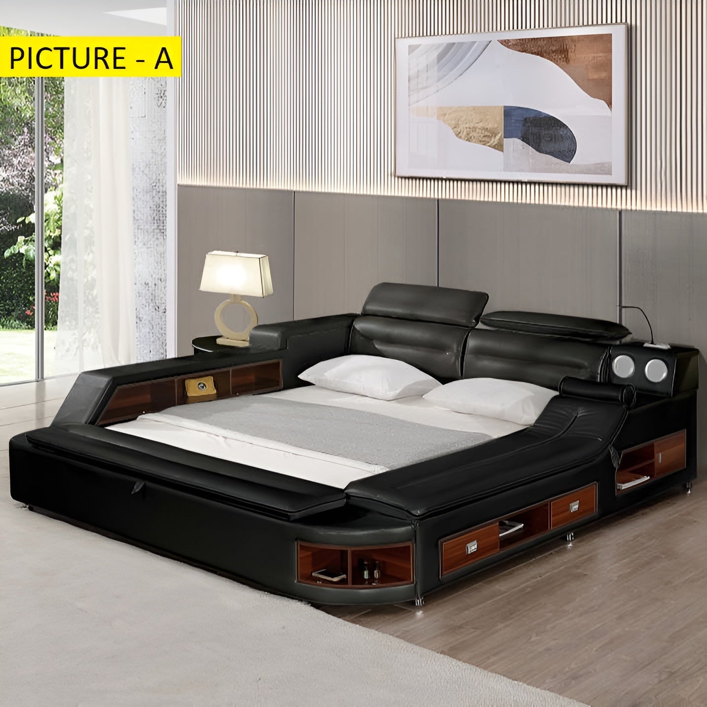 Queen Size Leather Smart Bed in Black - Lixra.com