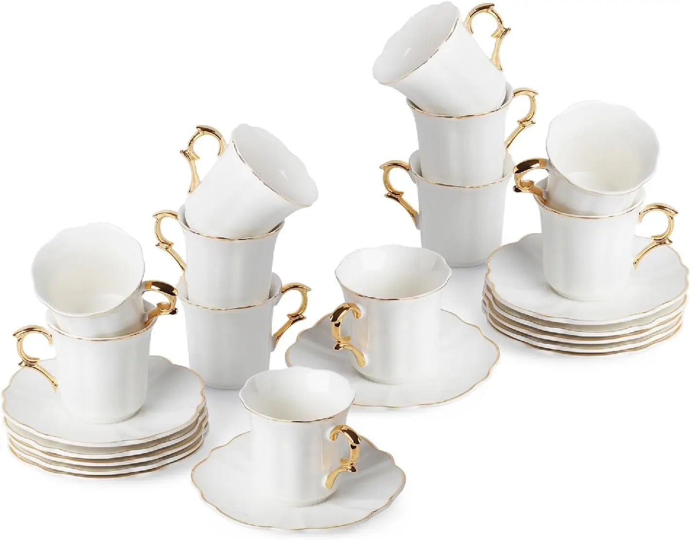 - 1 x 12 pieces Porcelain Cups With Saucer (12 x Cups + 12 x Saucers)