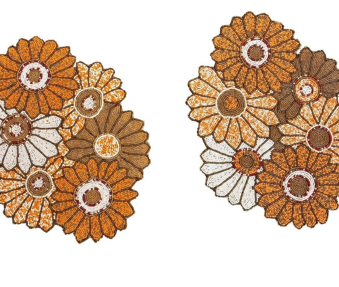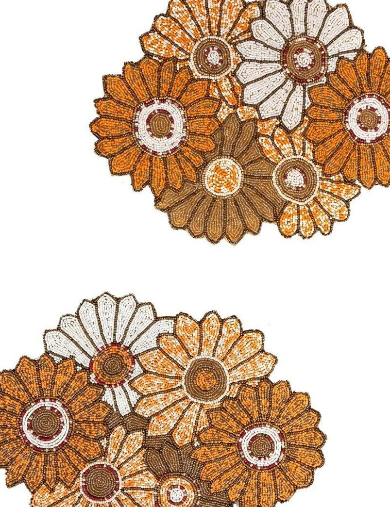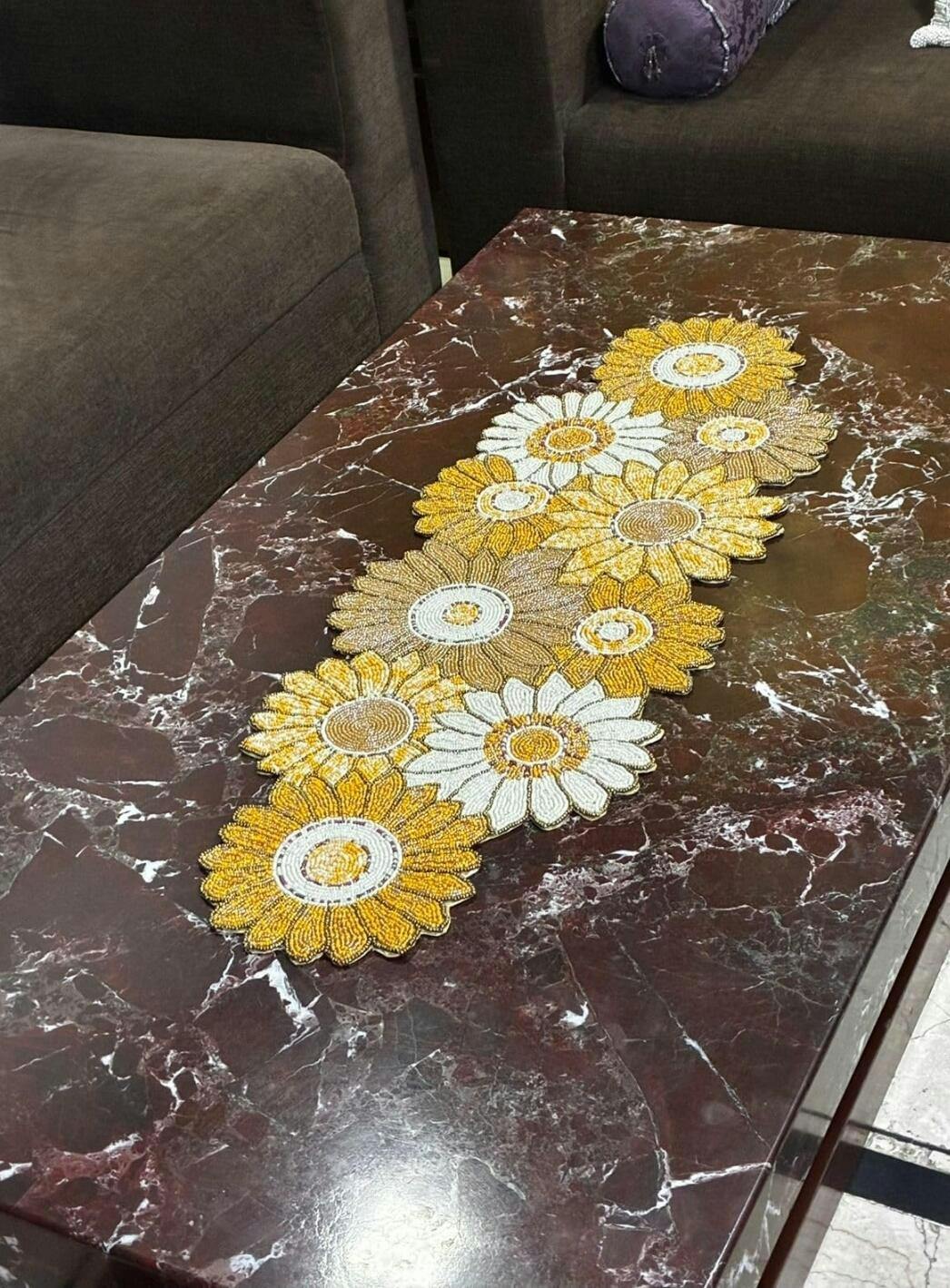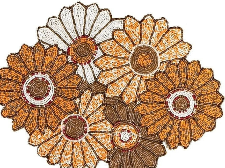 Elevate your dining experience with the Star Ornamental Beaded Table Runner with 6 placemats, which includes a beautifully detailed runner and six matching placemats.