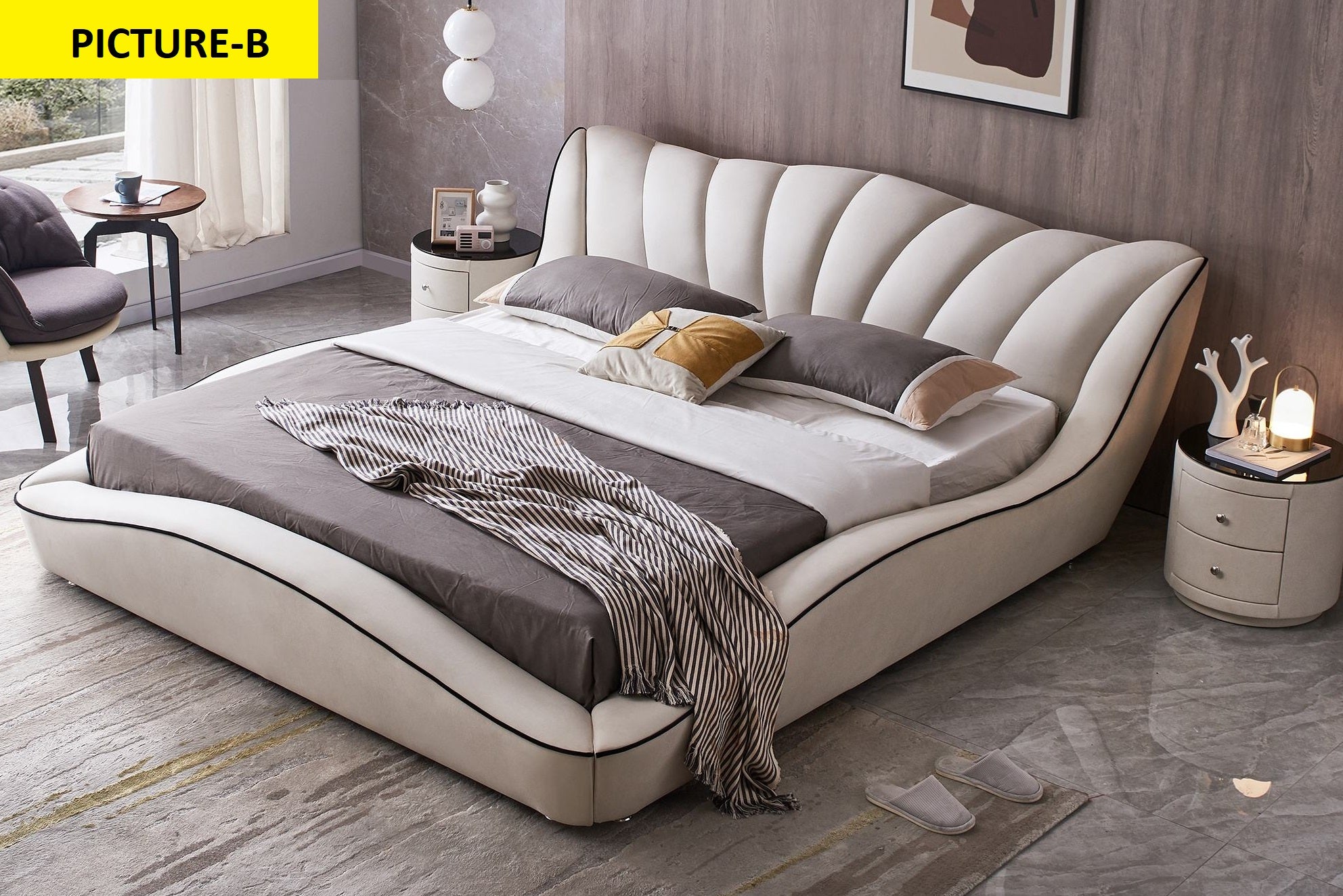 Stylish Wave Shape Modern Leather Bed - Lixra.com