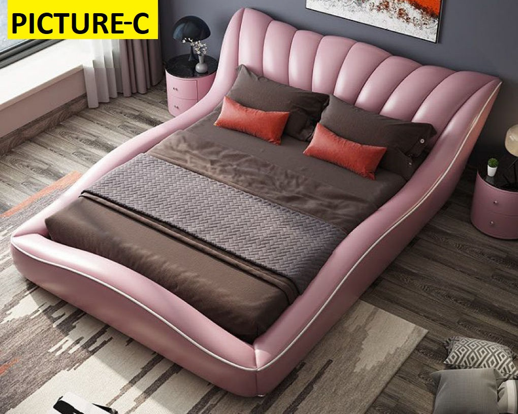 In addition to being gorgeous, this Leather Bed with a modern design makes your bedroom feel cozier. With the Stylish Wave Shape Modern Leather Bed's curved shape and chic finish, it enhances your contemporary bedroom flawlessly and offers unbeatable comfort. Its curved backrest and curved edge make it the ideal piece to draw in guests.