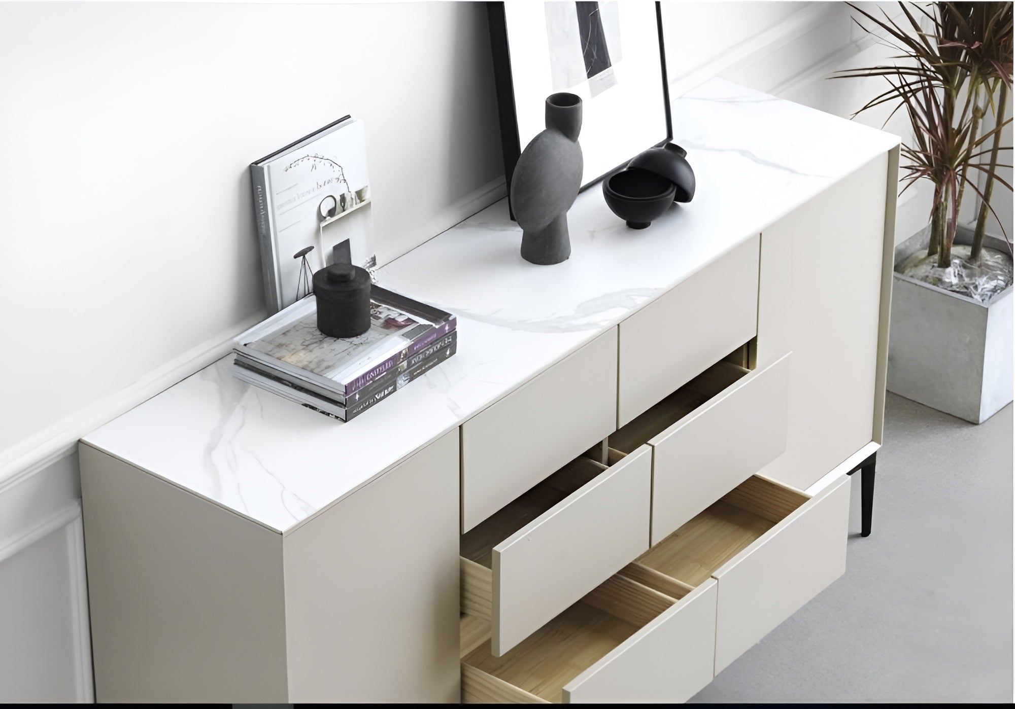 Wooden Crafted Marble Top Modern Buffet Table - Lixra.com
