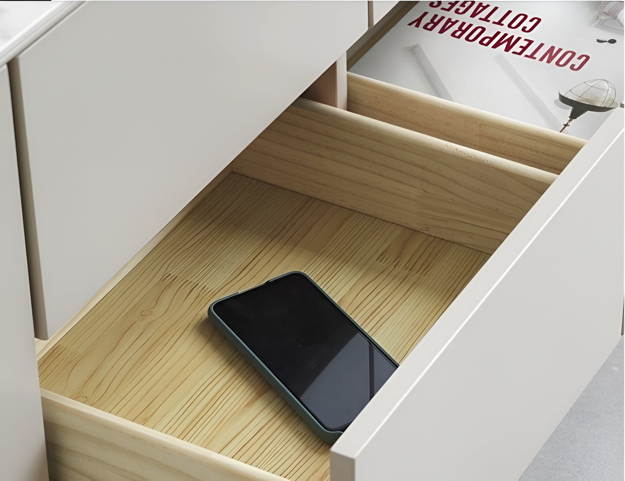 Elevate the look of any room with this Wooden Crafted Marble Top Modern Buffet Table. This Modern Buffet Table of furniture can be used as a side table or it can be used as a storage in the kitchen. It has six drawer shelves which itself provides a great amount of storage to store all kinds of items.