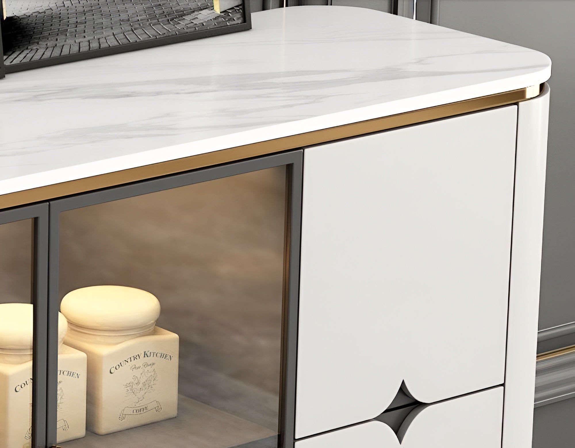 Wooden White Buffet Table With Marble-Top
