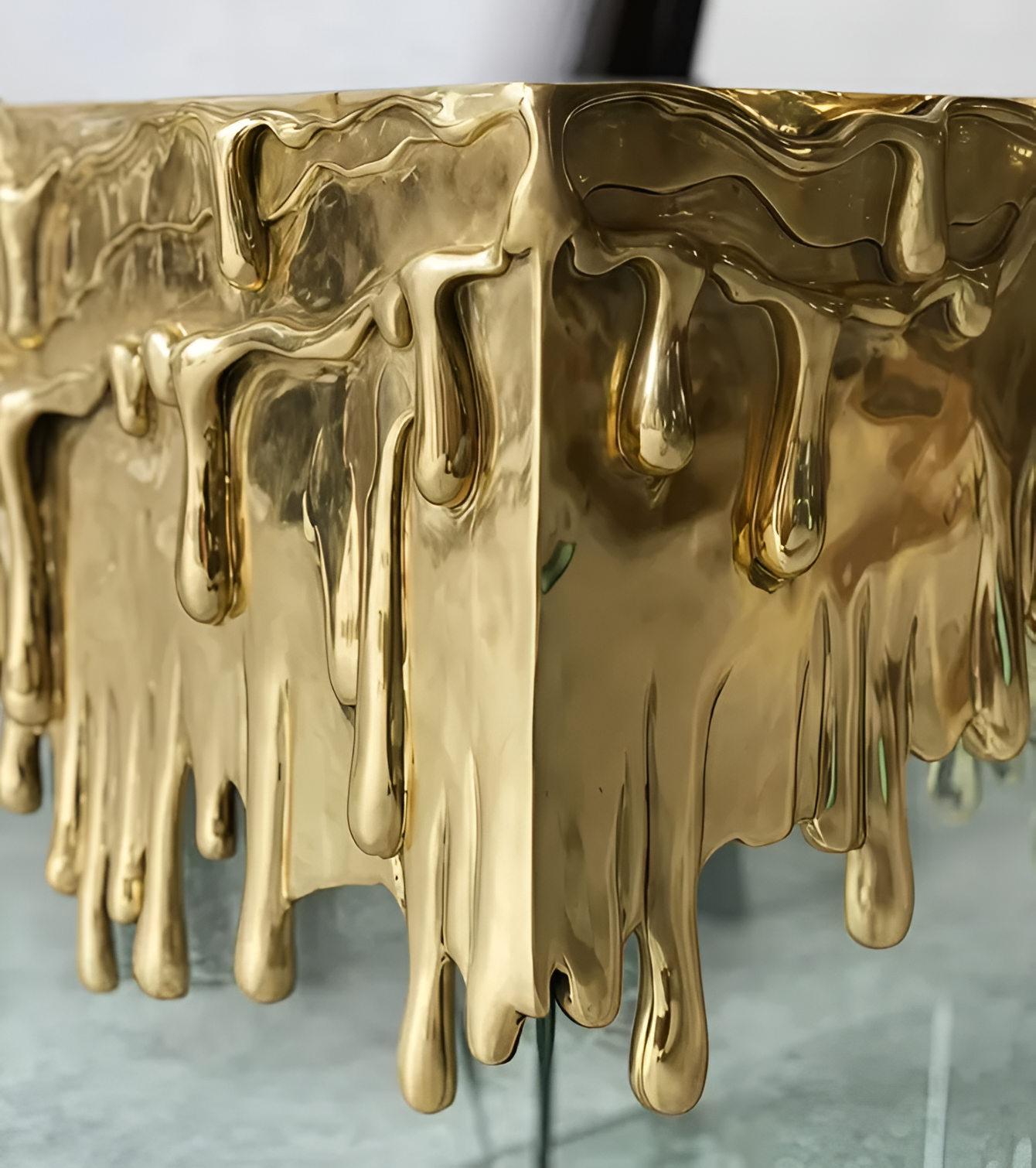 This 2-Piece Luxurious Side Table In Glass with a golden drip design combines art and practicality. This Glass Side Table is more than just furniture; it's a statement piece, with a solid transparent glass base and an opulent molten gold finish on top. Perfect for offices, living rooms, or bedrooms, it looks great as a decorative accent, display stand, or side table. This 1-Piece Luxurious Side Table in Glass is the ideal option for homes that appreciate contemporary elegance and creative flair because of its small size and striking design.