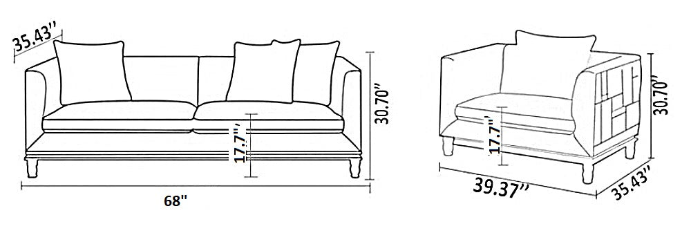 Absolutely love this sofa set! Very comfortable and plenty of space. Easy to assemble.This sofa is so comfortable and pretty! Definitely a great purchase!!Came in a timely manner. Is firm but very comfortable material!This sofa is so amazing! Comfy, fits perfect in our space, feels durable, arrived in manageable packages.