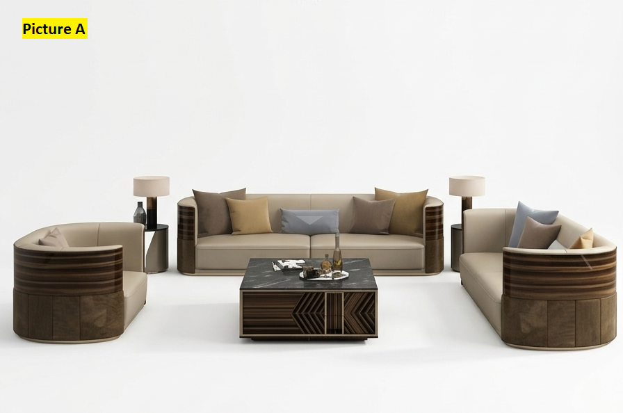 Note: Other items shown in the picture are not included but you can add the coffe table and the side table from the dropdown option.