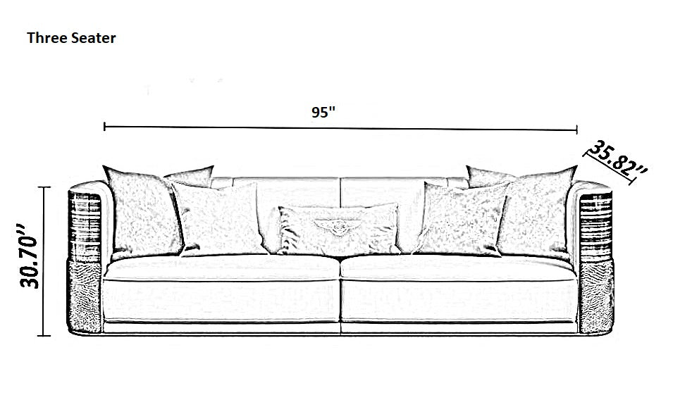 • L95xW35.82xH30.70 Inches (241.3x91x78 cm)