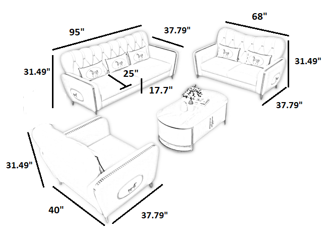 • L95xW37.79xH31.49 Inches(241.3x96x80 cm)