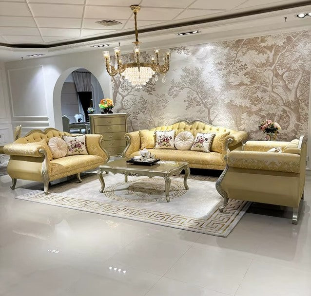 Its timeless style effortlessly blends in with both old and modern interiors, despite the fact that it cannot be altered. The 3 Piece Seater Printed Fabric European Sofa Set is a great option for anyone wishing to add classic elegance and daily comfort to their home decor because of its rich texture, sturdy construction, and fashionable appearance.