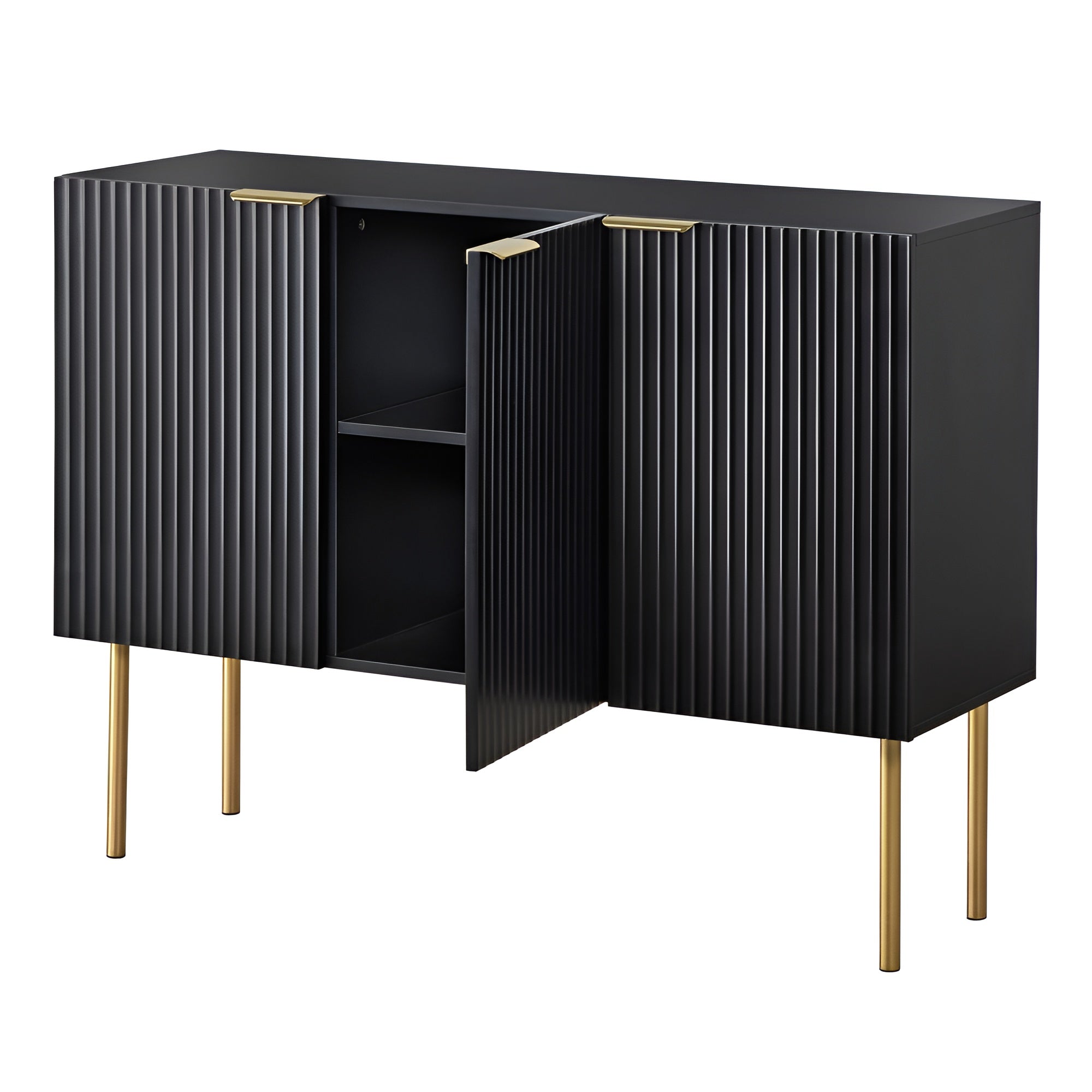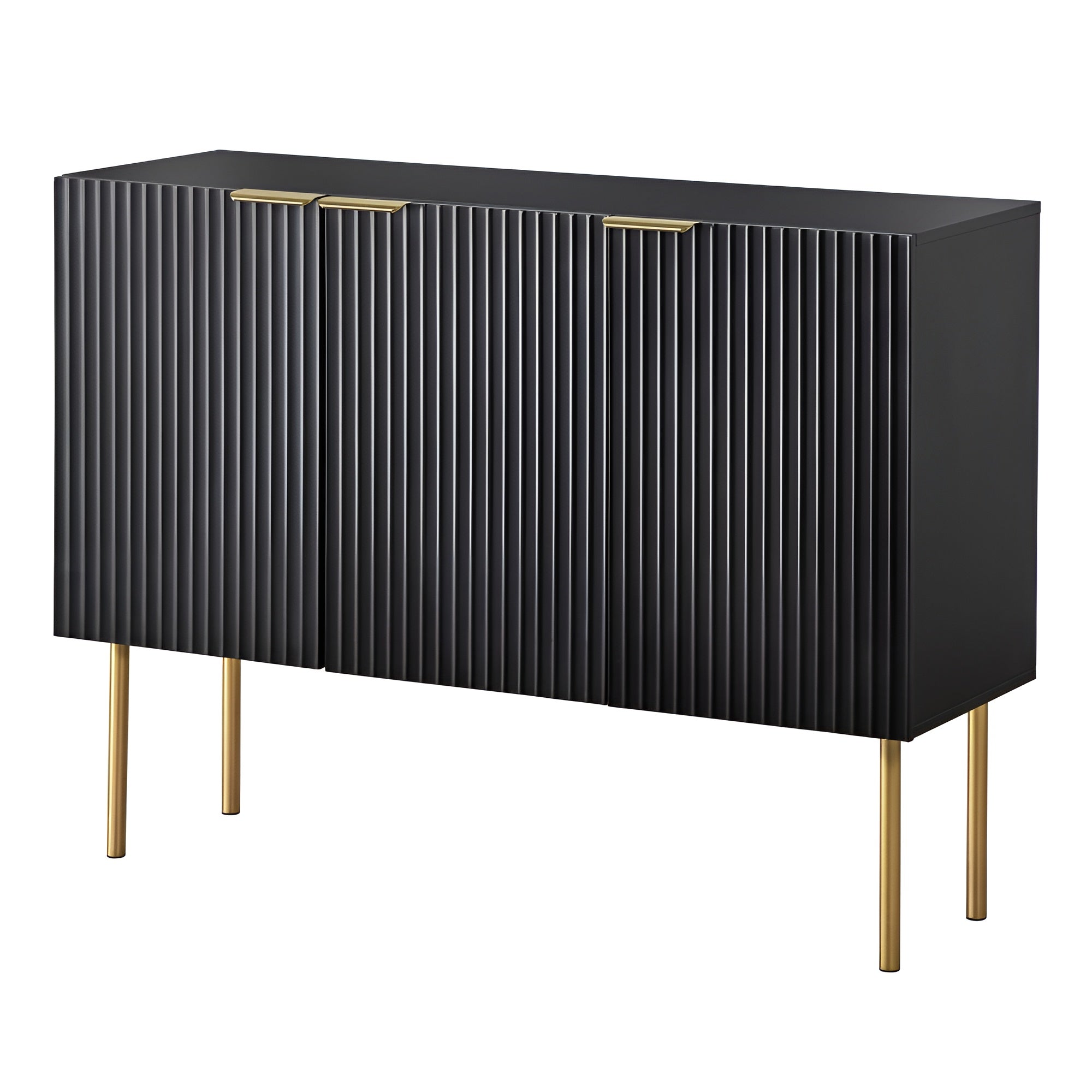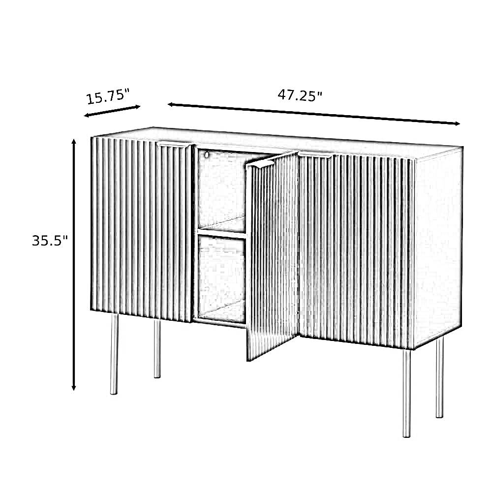 This Admirable Wooden Design Modern Buffet Table provides a variety of storage options, making it simple to adapt the area to your needs and give your house a stylish touch. he unique channel design on three cabinet doors gives this modern buffet table a different and eye-catching look. It has beautiful gold-tone door handles and legs that look great with its black color.
