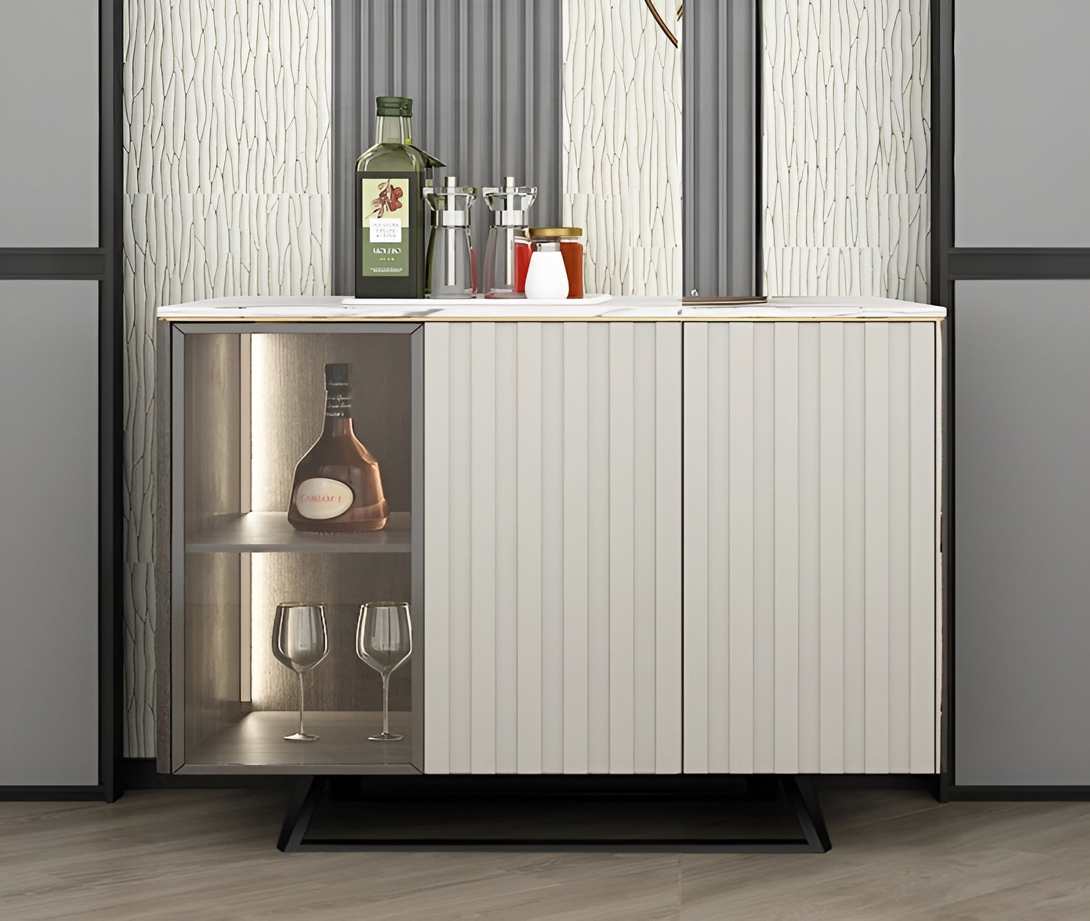 Ample Storage Marble-Top Wooden Buffet Table / Lixra