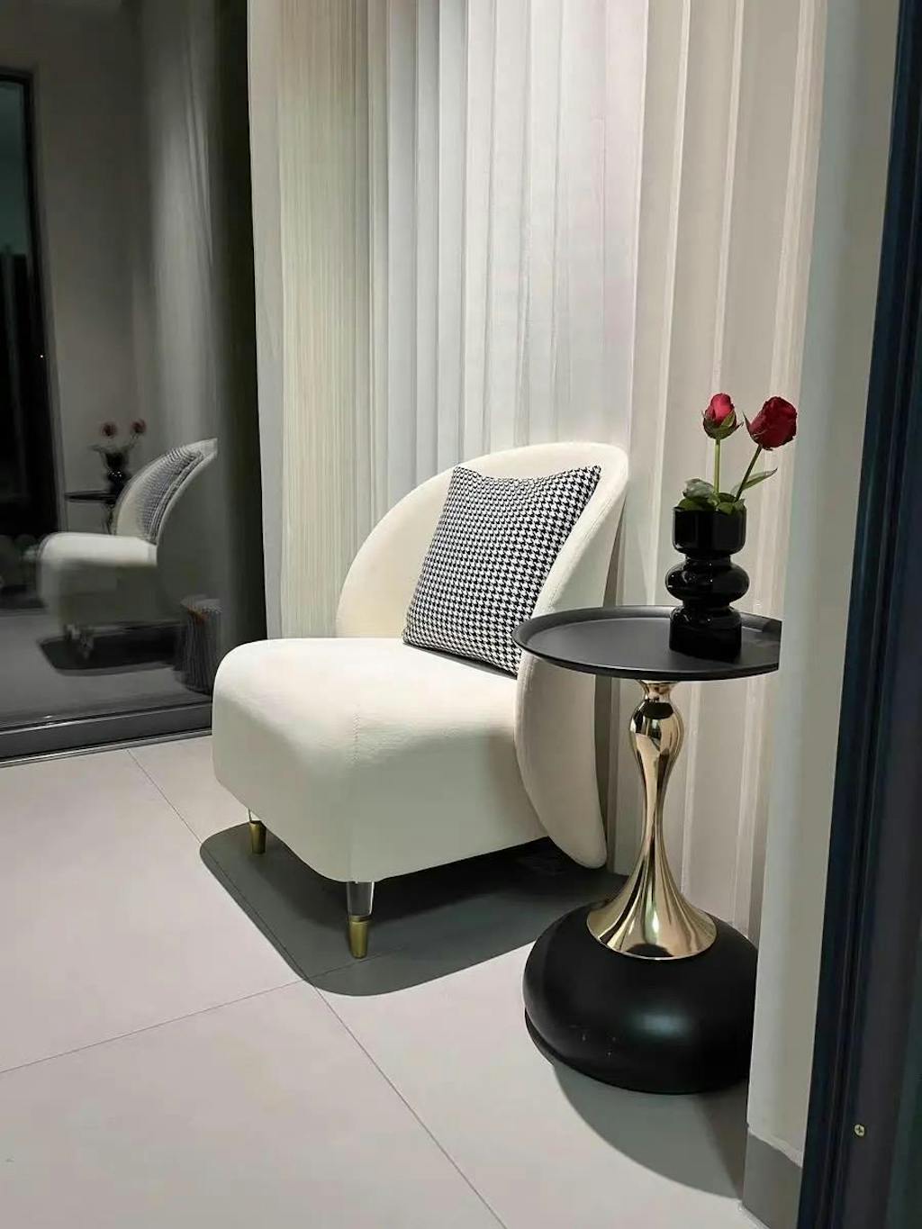 I got this black side table, and it looks fantastic next to my white chair. The contrast is striking and gives my living space a modern, clean vibe. It’s sturdy and well-built, holding my vase and coffee without any wobble. The finish is smooth and doesn’t scratch easily, which is great for daily use. Assembly was simple, and the size fits perfectly in my corner. Overall, it’s a practical, stylish piece that truly elevates the room’s look.