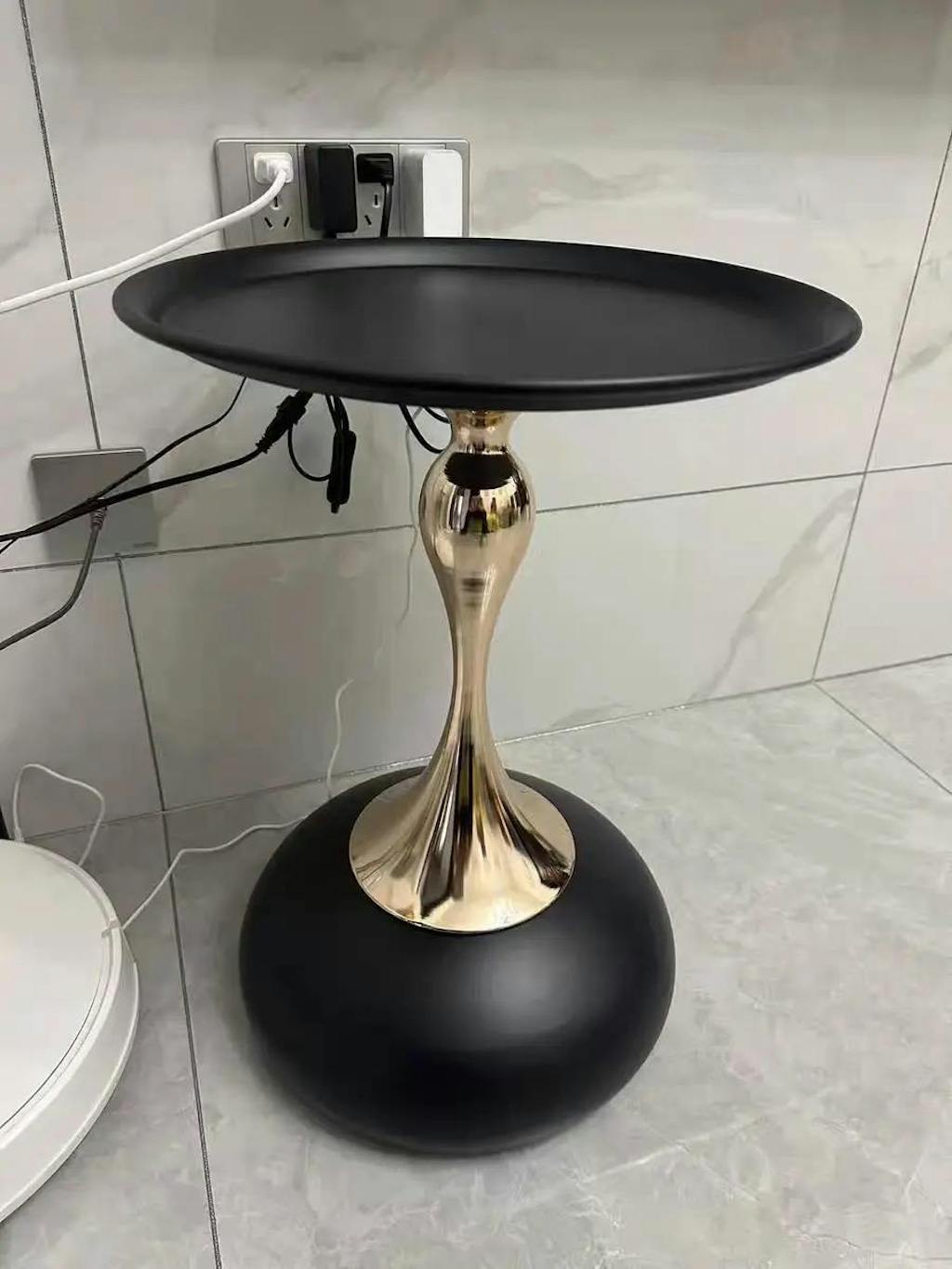 This side table feels like one of those lucky finds you don’t plan for but end up loving. The matte black top paired with the gold-toned stem gives it a classy, modern look that instantly stands out. It feels solid and well-balanced, not flimsy at all. I first placed it near a corner just to hold my phone and a cup of coffee, but it quickly became my go-to spot for evening snacks and a small lamp. It adds a subtle touch of elegance without trying too hard. Simple, stylish, and surprisingly practical—exactly what a good side table should be.