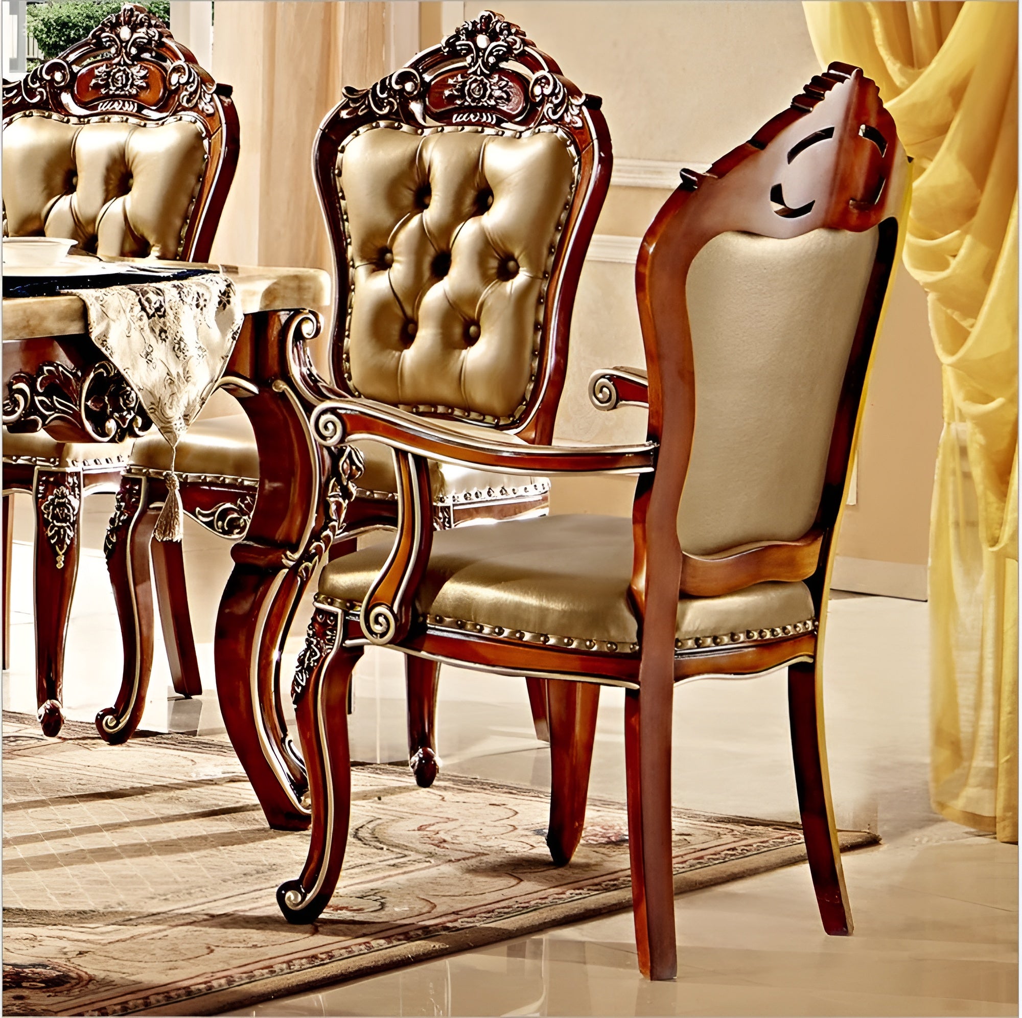 Dine in the magnificent style afforded by the Brusten European Wooden Dining Table Set, which is both sleek, sturdy, and functional. This Wooden Dining Table is the perfect selection for the dining area. The sturdy leather chairs add a perfect look to the dining table, as it has a great blend of modernity and versatility. It becomes a sports vintage-industrial look but is tampered with modern styling.