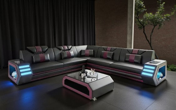Coastal Comfort Leather Sectional With Led Light - Lixra.com