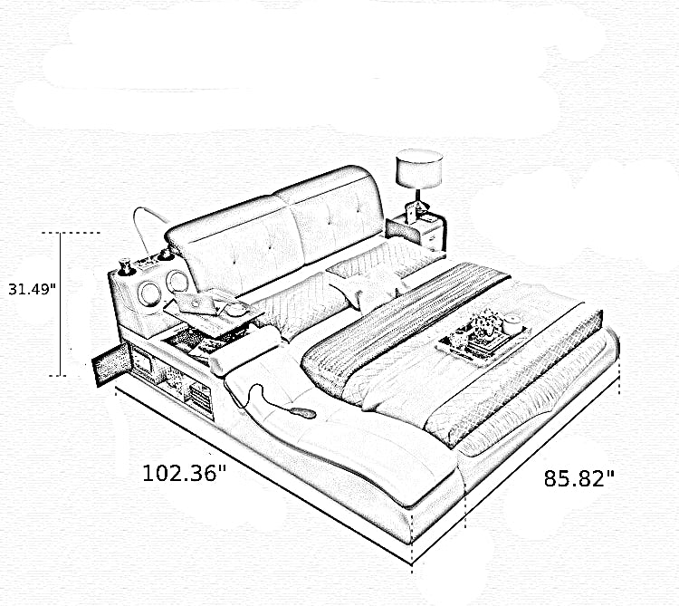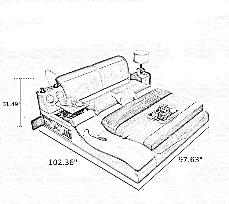 The wooden frame structure of this contemporary leather bed provides excellent strength, while the leather finish adds a touch of class. It features a multi-position adjustable backrest, a storage desk, Bluetooth speakers, an reading light with a USB charging port, and many other elements that create a truly luxurious experience. Bring this Contemporary Creative Design Leather Bed into your bedroom and enjoy a delightful, upgraded lifestyle. It will surely be worth the investment.