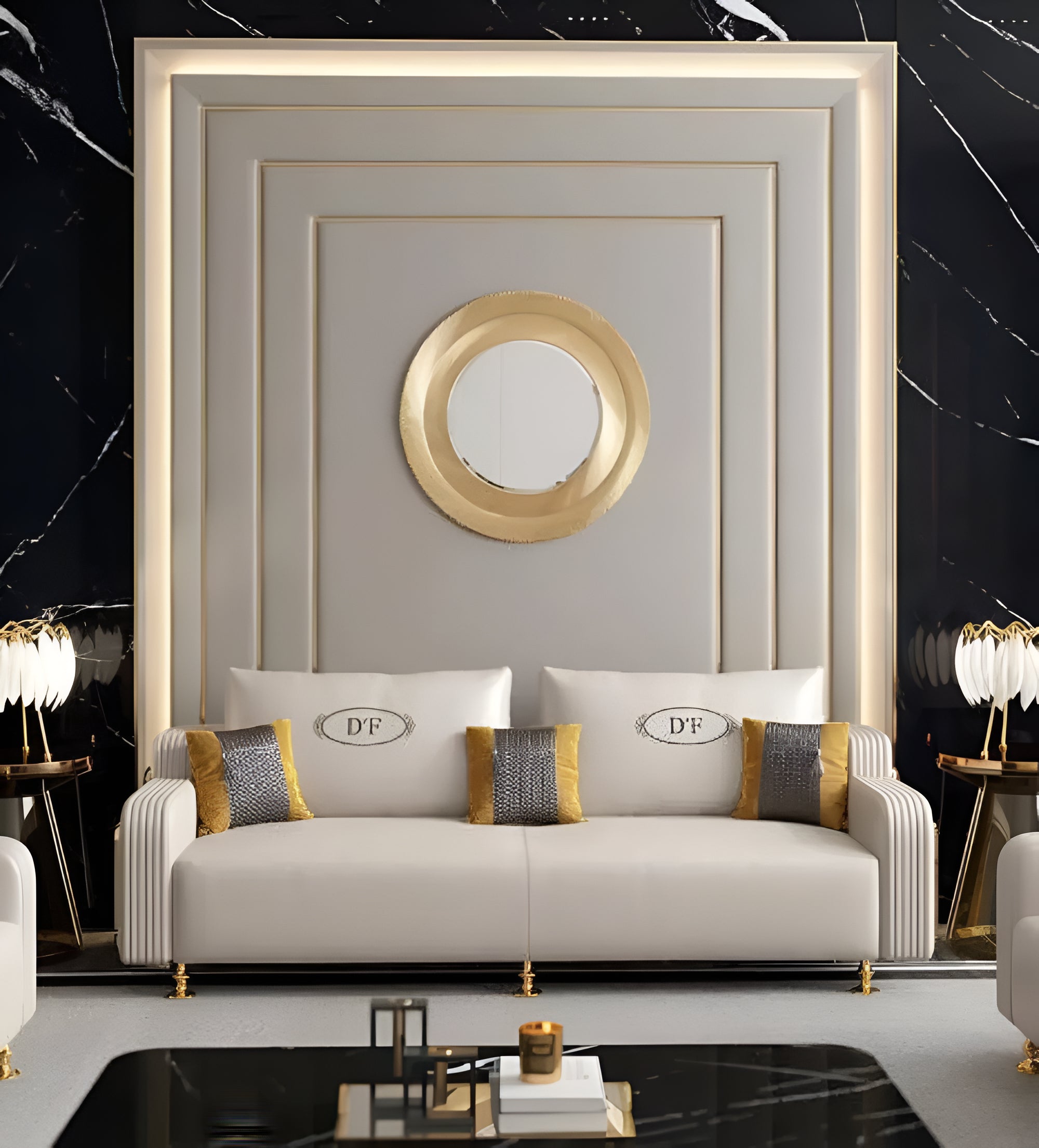 Experience sleek design with our Contemporary Living Room 3-2-1 Sofa Set, crafted to complement modern interiors. This contemporary sofa set features leather upholstery that offers the perfect balance of comfort and style. Built with a solid wooden structure, it ensures long-lasting durability and strength. The golden metal legs enhance its refined look while providing excellent stability and a clean, modern appeal.