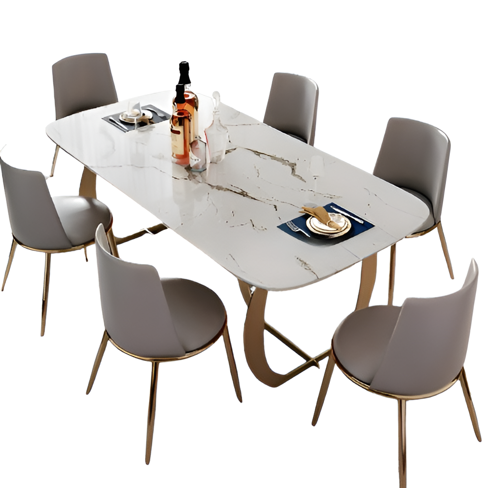 Conventional Rectangular Marble Dining Table Set - Lixra.com
