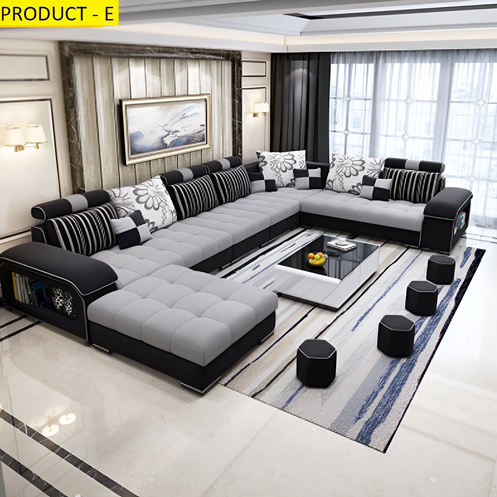 A Cozy Fabric Sectional Sofa-Set is a great sofa for every modern interior. It has every single feature that is complete enough to make an interior extravagant and eye-catching. The fabric sofa set is made by a solid wood structure, with a medium density foam and non-woven fabric which makes it durable and stable for a long life.