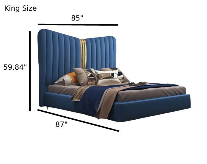 This Elegant Designer Leather Bed with Headboard will add sophistication to your room. This Designer Bed, with its leather upholstery and contemporary design, gives any bedroom a refined, modern appearance. Bold gold accents add a luxurious touch, and the high backrest headboard offers comfort and style.