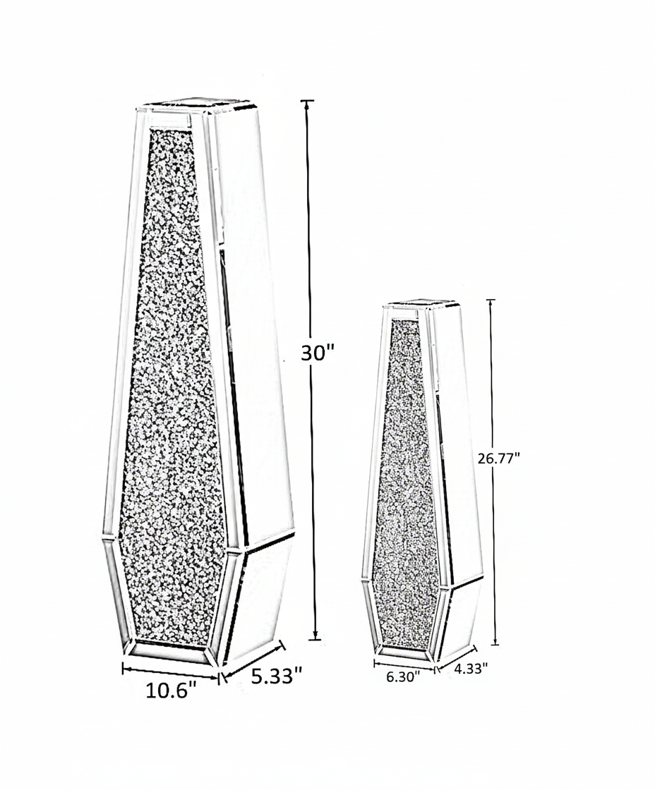 Beautiful and rich mirror vase with crushed diamonds in a Crushed Diamonds Mirror Floor Vase. exquisite delicate twinkle-shine high-end mirrored vase for interior design, Material inner MDF construction, plenty of glittering smash diamond crystal sparkle glaring on the front and back, crystal mirror and glass on the surface. Beautiful ornamental vase to complete an interior design.