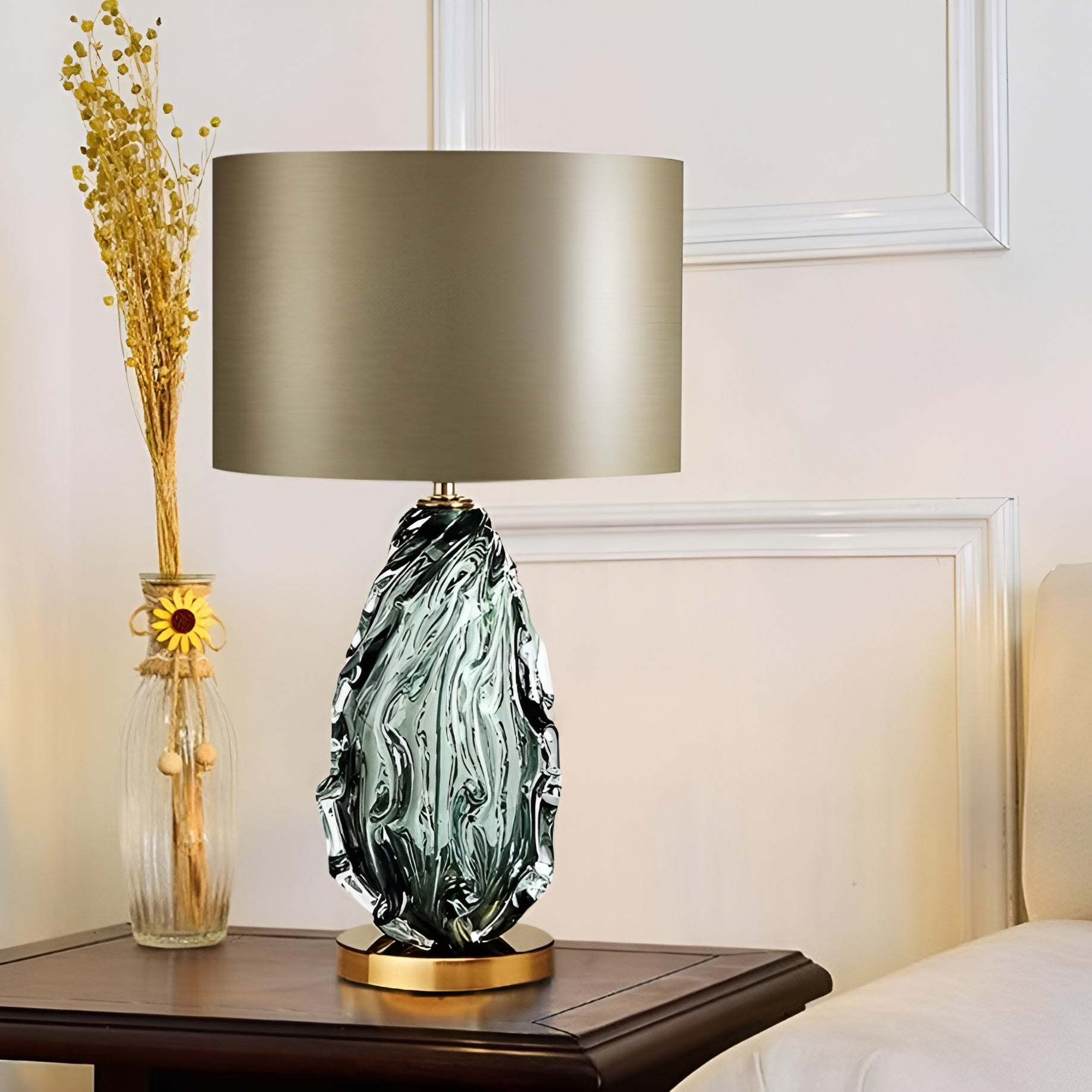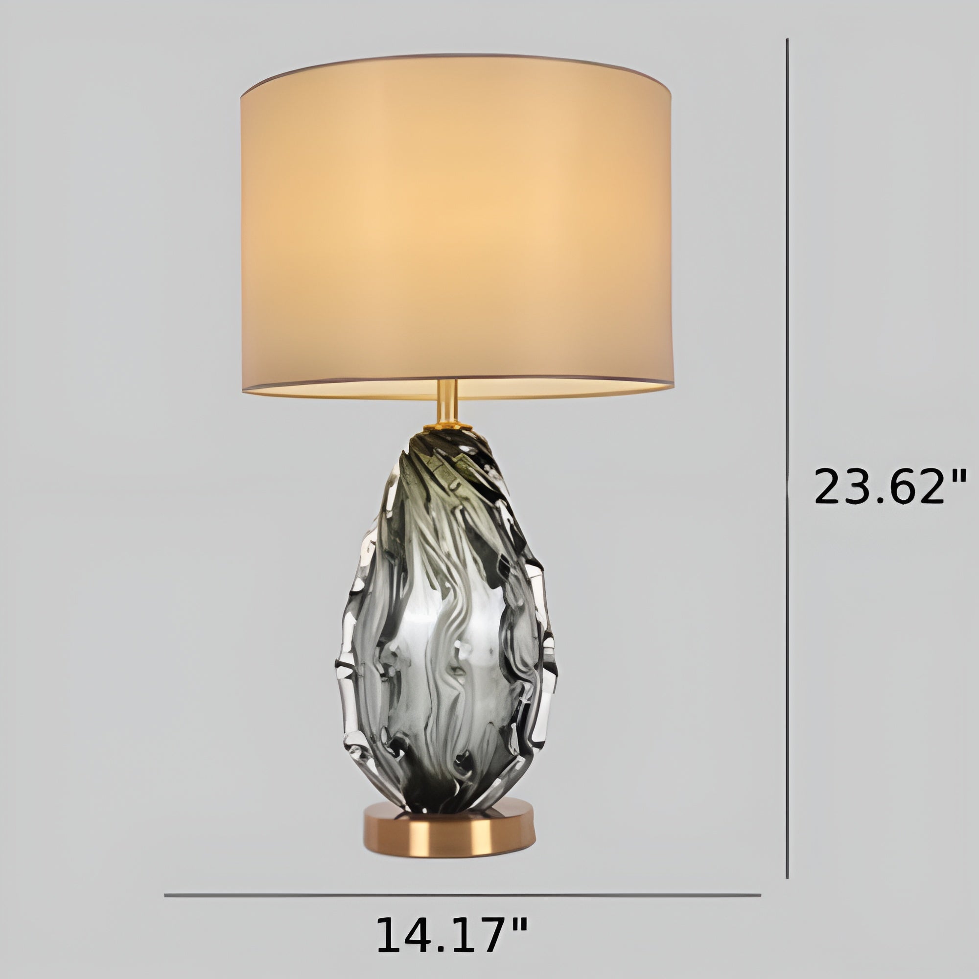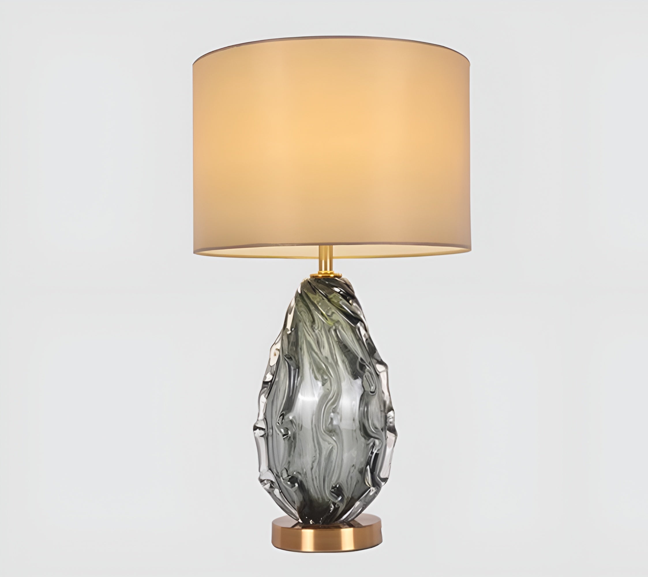 Presenting the gorgeous Designer Oval-Shaped LED Table Lamp. The exquisitely sculpted glass base of this one-of-a-kind piece draws attention right away. Indeed, for long-lasting quality, the tasteful glass contrasts flawlessly with the sturdy metal base. This innovative and useful designer lamp will enhance your home's décor right now.
