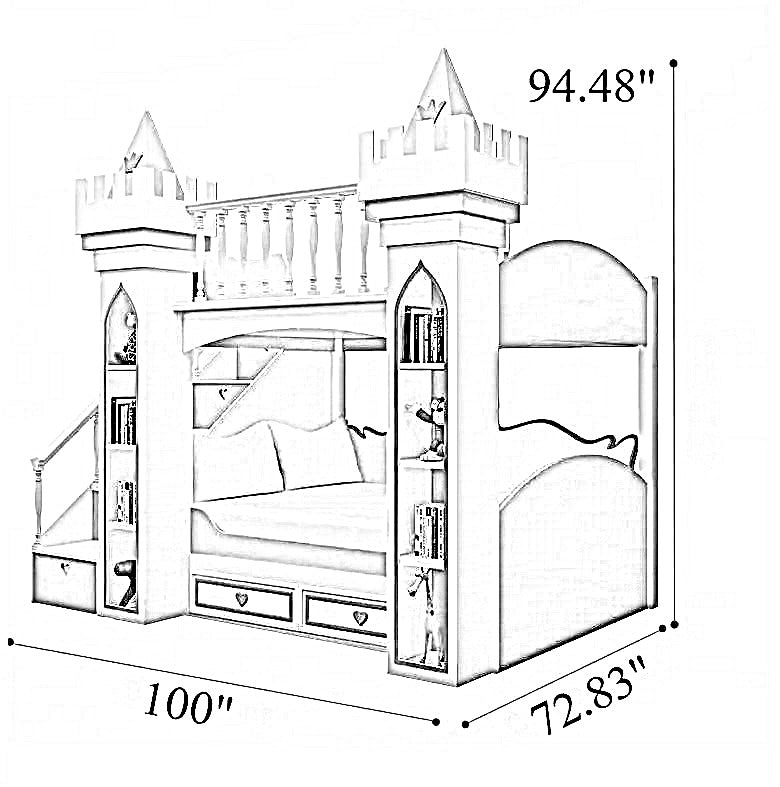 Easy and safe access to the princess castle bed is ensured by a ladder cabinet with a climbing ladder, and children may easily hold the railing design as they ascend to their royal sleeping chambers. To finish the room's enchanted atmosphere, the Enchanted Princess Castle Bed comes with more entrancing elements including a ladder cabinet that matches and other decorations with princes themes.