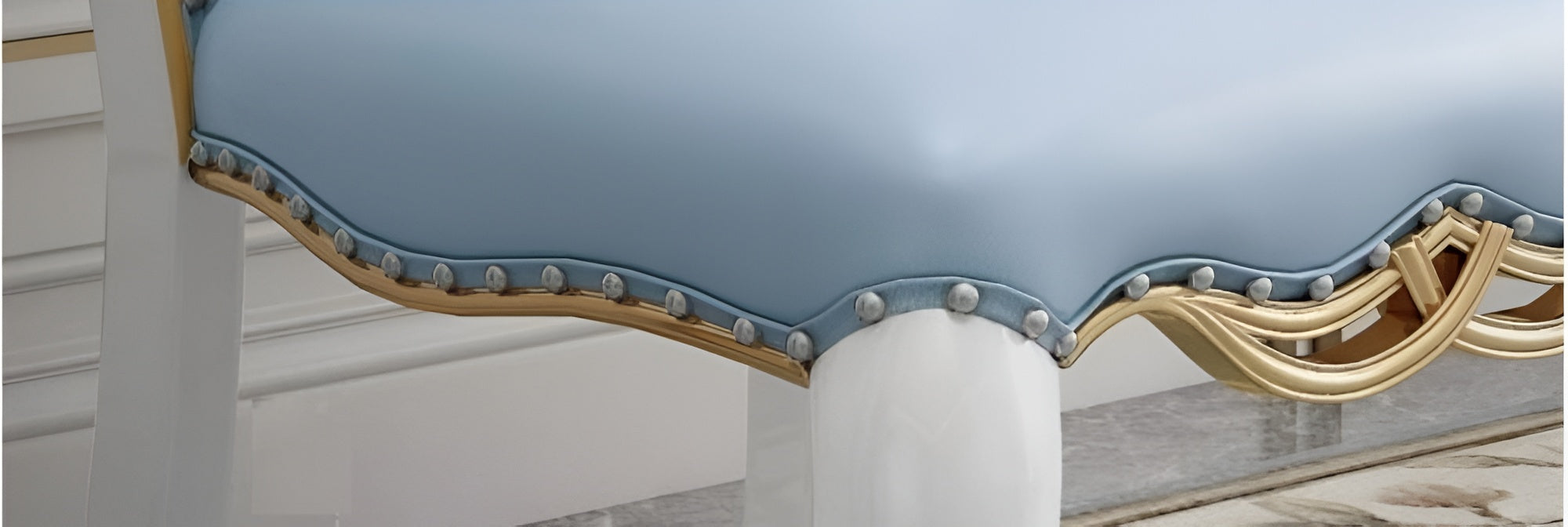 This European Brusten Luxurious Wooden Dining Table Set with a lazy suzan has been designed beautifully and can steal the limelight of any dining space. With its detailed, intricate work, this Marble round dining table set showcases a great job with its fine designs and sturdy, solid wooden body structure. The leather dining chairs have a great capacity to steal the limelight from any ambiance.
