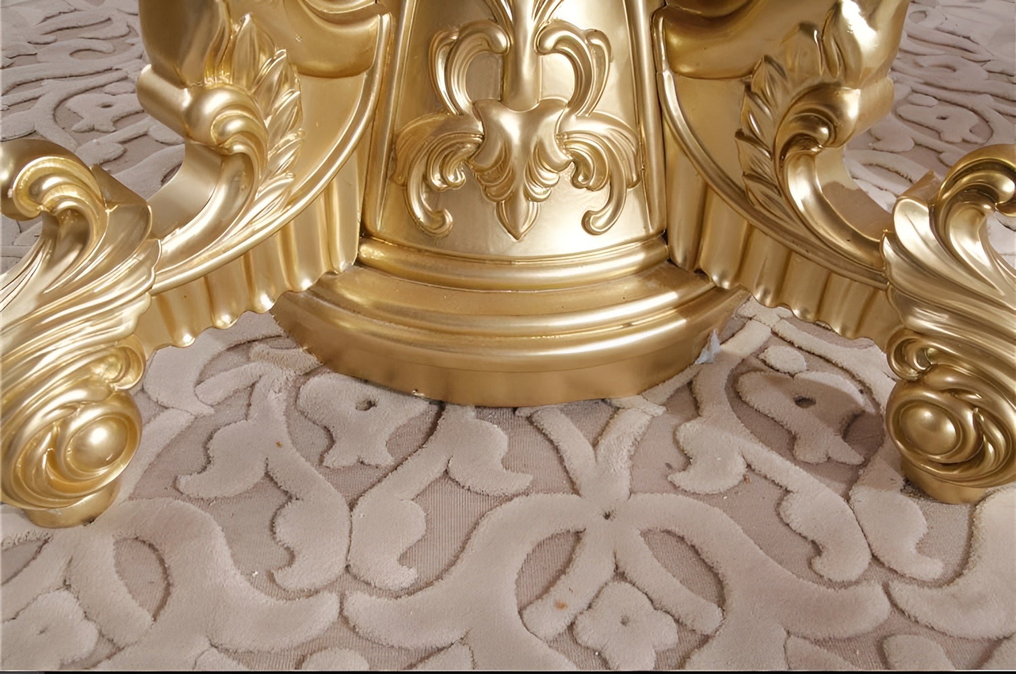 The European Marble Brusten Classic Round Dining Table, a stunning display of elegance and craftsmanship, will elevate your dining experience. This Round Marble Dining Table is beautiful and long-lasting, with a strong wood frame and a quality marble tabletop. With its elaborate European-inspired details and gorgeous sparkling gold finish, the handcrafted base provides regal charm to any home.