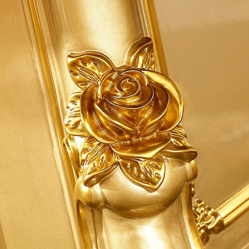 A glossy marble top and golden craftsmanship in the entire furniture create a royal and elegant look. To keep your necessities organized, the antique luxury Rectangle Marble Dining Set also features a storage cabinet. The leather chairs add a touch of modernity to the European Rectangle Marble Royal Dining Table Set as they have a great mix of style and functionality.