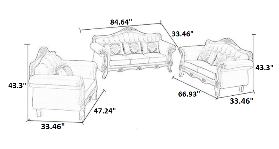 • L84.64xW33.46xH43.3 Inches (215x85x110 cm)